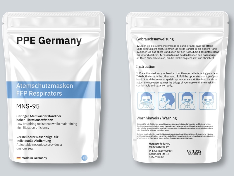 PPE Germany produziert in Deutschland Personal Protective Equipment (PPE) für den professionellen Nutzer. Wir bauen dazu eigene Kapazitäten der Maskenproduktion in Berlin auf.